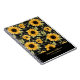 O impressionante padrão de girassol se destaca lindamente contra o fundo preto e cinza de gingham