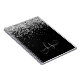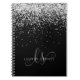 Notebook Glam Black Silver Glitter Elegante Monograma. Personalize facilmente este design de notebook chic moderno com elegante brilho prateado em fundo preto. O design apresenta seu monograma manuscrito com espirais bonito e seu nome.