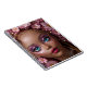 Uma boneca bonito com maquiagem brilhante e flores rosa. Personalize com uma inicial.