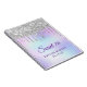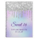 Caderno Espiral Glitter prateado gotas iridescentes Doce 16 convid