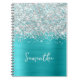 Caderno Espiral Glittery Silver Turquoise Blue Glam Nome do Script