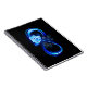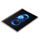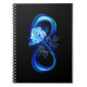 Luminous infinity symbol with glowing, beautiful, lushly blooming rose made of blue flames on black background.
