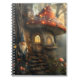 Design de um gnomo e sua casa de cogumelos em uma floresta mágica.