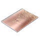 A trendy design of faux brushed rose gold metal background and gold glitter with gold monogram and black script name.