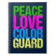 Um presente bonito de guarda de cores para alguém que faz a bandeira girando com a banda marcial na escola. A Guarda Peace Love Color está escrita em verde bonito, rosa quente, azul e amarelo neon.