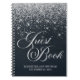 O livro de hóspedes moderno, cintilante e brilhante, apresenta uma cintilação falsa, brilho prateado no topo, sobre fundo preto. Você pode criar seu próprio livro de hóspedes para a festa de aniversário de 21 anos dela neste caderno brilhante. Isto será perfeito como presente personalizado para o aniversário da menina.