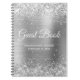 Crie seu próprio livro de hóspedes orçamentário neste vazio notebook para o chá de fraldas glam dela. O fundo da arte digital apresenta cintilação prateada cintilante, cintilante e feminina, com uma folha metálica de cinza boba. Você pode personalizar a cor, o estilo e o tamanho da fonte ou adicionar texto conforme necessário. Todas as cinzas e folhas produzem impressão como uma foto neste cobrir de notebook vazio.