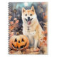 Caderno Espiral Halloween Akita Com Pumpkins Assustado