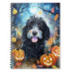 Caderno Espiral Halloween Bernedoodle Com Pumpkins Assustado