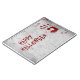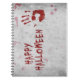 Uma ilustração horrível e assustadora do Dia das Bruxas, com uma impressão de mão sangrenta e uma espadilha de sangue num fundo gelado.