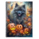Caderno Espiral Halloween Keeshond Com Pumpkins Assustado
