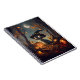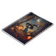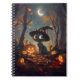 Um gato preto vestindo uma cor laranja e uma bruxa preta que se senta debaixo de uma lua crescente numa floresta de outono rodeada de folhas e lanternas-de-Jack brilhantes. Este bonito notebook é perfeito para celebrar a estação mais assustadora do ano - Halloween!