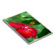 Nesta imagem impressionante, uma flor vermelha de hibisco é destacada contra um fundo verde molhado.
