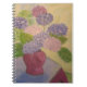 Este caderno espiral apresenta uma bela e macia pintura de hidrangeas num vaso do artista Bem amado Brendan Loughlin de Guilford, Connecticut.