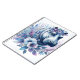 Notebook apresenta trabalho de arte de aquarela botânica de um hipopótamo com uma estética feminina em tons legal, azuis e roxos. Um retrato floral de animais selvagens de Dee Claire.