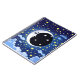 Notebook em uma serena lúdica, mística, humana na lua, brilhando contra um fundo de estrelas e nuvens noturnas