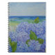 Este caderno espiral caracteriza uma pintura dos Hydrangeas pelo mar e foi feito por Brendan Loughlin, um artista conhecido de Guilford, Connecticut.