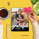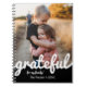 Faça um lindo notebook. Adicione sua foto favorita e personalize áreas de texto para torná-la especial e exclusiva para você ou como presente. Design apresenta um moderno script de blocos de cores preto e branco para a palavra grata.