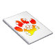A pata do cão no estilo de desenho animado é bonita em tons de amarelo, laranja e vermelho. Notebooks personalizados. Ideia de presente para amantes de cães de todas as idades.