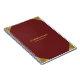 Imagem de um impressão de couro vermelho-escuro com sotaque dourado nos cantos.