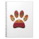 Uma pata de cachorro com o padrão Aztec. Notebooks personalizados. Design colorido. Ideia de presente única para adultos e crianças.
