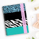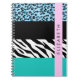 Caderno Espiral Impressão Leopardo, Impressão Zebra, Azul, Seu Nom