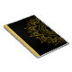 Um notebook moderno com um design de mandala radiante de ouro, semelhante aos raios solares. Combina simplicidade e criatividade com um toque de elegância, fazer-a uma fonte de inspiração diária. Perfeito para ideias criativas, planejamento, ou como um dom distinto que evoca otimismo e energia positiva.