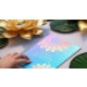 Instrutor de Meditação Yoga Studio / Treinador de Vida / Healer / Mestre Reiki / Modelo de Notebook de Terapia de Massagem - Elegante Faux Rosa Gold Foil Floral Lotus Mandala Símbolos em Fundo de Folha Azul Roxo.
