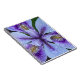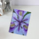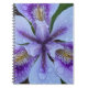 Um notebook de tamanho pessoal, encadernado em espiral, que apresenta a foto do cobrir de um florescimento Iris, roxo e sem barba, com salpicos de amarelo e gotas de chuva em suas pétalas. Um design floral adorável! Use como diário ou para fazer anotações.