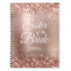 Um notebook de vazio de vidro feminino para a irmã da noiva. Todo o texto elegante do estilo caligrafia moderno é personalizável. Por exemplo, altere a cor branca da fonte para uma cor mais escura. O plano de fundo apresenta rosa dourado falso e folha de papel cor-de-rosa pincelada com brilho falso cintilante. Estes elementos digitais são impressão como uma foto.