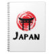 Ilustração de design de texto do Japão com sol vermelho gigante e decoração de portão de Torii para todos que gostam de viajar