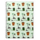 O notebook temático de jardinagem. Espadas, sementes, cordas e potes.