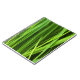 Esta design apresenta uma foto super próxima de grama verde, dando uma excelente visão das lâminas individuais que são esmagadas com gotículas de orvalho.