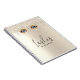 Este design de notebook de vidro apresenta um fundo brilhante de champanhe com tipografia preta personalizada e olhos brilhantes. Perfeito para profissionais de moda ou beleza.