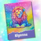 O leão de aquarela do arco-íris com um contorno de brilho ombre faux é único e feminino. Personalize seu caderno espiral personalizando-o com o nome dela e envie sua filha de volta para a escola no estilo deste outono!