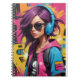 legal menina, vestindo óculos e fones de ouvido, arte de rua, colorida, tomboy