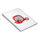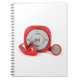 Caderno Espiral Leitor de mp3 vermelho e fones de ouvido prendidos