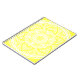 Esta mandala branca senta-se sobre um fundo amarelo-limão. As cores são felizes e pacíficas. Parte da Coleção Bardh Mandala. Este design pode não ser impressão tão brilhante quanto aparece on-line.