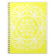 Esta mandala branca senta sobre um fundo amarelo-limão. As cores são felizes e pacíficas. Parte da Coleção Rosenn Mandala. Este design pode não ser impressão tão brilhante quanto aparece on-line.