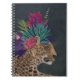 Leopardo da Casa Quente 1 por Fab Funky. Um leopardo repousa com flores tropicais e verde sobre a cabeça como uma peça de cabeça. | 192441GG