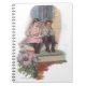 Este menino está levando uma lição enquanto senta nos degraus com sua irmã inteligente. Ilustração de livro de prato colorido e lindo de 1909.