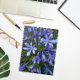 Um notebook de tamanho pessoal, encadernado em espiral que apresenta uma foto cobrir de Agapanthus blooms azuis, comumente conhecida como Lily-of-th-Nile. Um design floral adorável! Use como diário ou para fazer anotações.