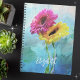 Um fundo de cor abstrato fluido de azul claro e escuro, com verduras mudas, brancos e cinzentos sutis. As flores são um rosa brilhante, fúcsia e amarelo. Esta design de tendência representa uma composição clássica de chic boho. Personalizar com um nome, assunto ou deixar vazio. É perfeito para composições, esboços, jornalismo, diário, etc. Faz um presente excelente para voltar à escola, ao escritório ou à vida doméstica. Vem em diversos estilos e tamanhos.