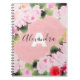 Belo design de notebook espiral personalizado com rosas de aquarela digitais em tons cor-de-rosa com uma área de vazio para o seu texto.
