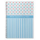 Um computador portátil espiral ou Diário para personalizar, com um padrão de Lírios e Dragões Azuis cor-de-rosa, agrupado com um padrão listrado correspondente; da coleção 'Lily Pond' de Posh & Painterly.