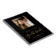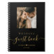 Livro de Convidados Personalizado de Casamento Personalizado de Coração de Script Elegante em preto e ouro. Apresenta texto moderno do "livro convidado" em caligrafia manuscrita, data de casamento e casais com forma cardíaca. Personalize com sua foto favorita e personalize suas informações. É excelente para o dia de casamento ou aniversário.