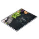 Um notebook para as suas receitas familiares favoritas. Comida fresca, ervas, cebolas de manjericão, um Conselho de madeira cortando um helicóptero sobre a canvas rústica escura de um pintor com manchas de tinta. Personalize e adicione seu nome de família e texto.