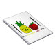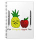 Um design do divertimento que caracteriza uma caneta, um abacaxi, uma maçã, e outra caneta…. porque. meme. :)