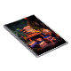 Este notebook tem uma foto de muitos livros nele.