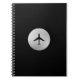 Notebook de aviação com quadro de Cinza de círculo Faux e imagem de avião preto.